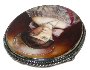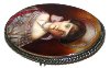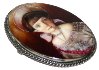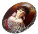 Description: Valentina Maslova from the village of Fedoskino is a talented artist who painted this beautiful brooch. On the oval piece of mother-of-pearl the artist has painted the portrait of Grand Duchess Anastasia, the youngest daughter of the last Russian Tsar Nikolas II.