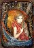 The work is called "Sunrise" and shows us sunrise as young Lady. The scene is painted in bright oil paints to create a festal mood. Shining pieces of gold metal leaf that can be found in the costume of lady-sunrise and rich golden ornaments are used to underline her beauty.