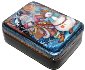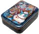 Description: Talented artist Bobkova from the village of Fedoskino is the author of this attractive box that shows Santa Claus getting presents for children. The Snowman is stayed near by.