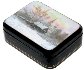 The box's interior is traditionally red, the exterior is covered with a black paint.