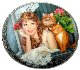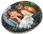 Description: Talented Fedoskino artist Uliana Glazkova has painted this beautiful box. The work is called "Ready for a Date", and shows a beautiful young red-hair girl sit at the window of a country house. Her smile is charming and two also red-hair cats are purring at her hand and her shoulder. The girl has a flower in her hair and a freckled face.