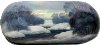 Description: This little box painted by Sergey Parmeonov of Fedoskino depicts the clarity and beauty of a winter day. The scene depicts a frozen, icy river and the surrounding landscape filled with trees and snowdrifts. The landscape is lyrical and romantic. Snow-covered trees, with delicate lace-like branches, rolling hills covered with thick snow create a harmonious image. The scene is painted mostly in white and gray-bluish tones, which in the best way possible can help to reproduce the atmosphere of a winter day. The palette is soft and cool, and you can almost feel the chilly air. The artist does a nice job creating the look of snow on the trees, and the reflection of the bank on the icy river. Mother-of-pearl creates the depth of the sky and the brilliance of sunrays fighting through dense gray clouds. The snow looks very soft, as if it were untouched all winter. Breathtaking landscape!