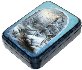 The scene is bright and radiant as besides of various shades of light blue oils the artist has used here gold metal paint and a piece of mother-of-peal.A piece of mother-of-pearl is set into the middle part of the scene, so the sky is shining through the trees and makes the box look more appealing!