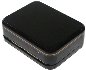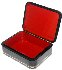 The box is constructed out of paper-mache. Black lacquer covers the exterior and red lacquer covers the interior of the box. The box has a hinge from the top of the portrait, and rests on a flat bottom. The box is signed with the artist's name.