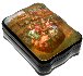 The scene is framed with a gold line; the box's sides are decorated with two parallel gold lines.
