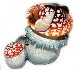 Description: The innovative style of Karina Kersilyan from Fedoskino is represented as creative genius with a dash of realism. Forest mushrooms peeping from three-dimensional leaves look fantastically natural! The mushrooms presented here are called "Fly-agaric" Mushroom. Russian mushroomers are not using them to eat, but all the evil spirits from Russian fairy tales likes them a lot!