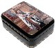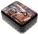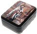 The painting is framed with a thin gold line. Two parallel gold lines wrap around the box's sides.