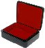 The box is made out of paper-mache. Black lacquer covers the exterior and red lacquer covers the interior of the box. The box has a hinge from the top of the scene, and rests on flat bottom. The work is signed by the artist.