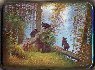 "Morning in the Woods" as this work is entitled was originally painted on canvas by Ivan Shishkin. Exhibited in the Moscow's Tretyakov Gallery, it is one of the most popular pieces viewed in the entire museum. It has become something of a national symbol for Russia, which lacquer miniature artists were quick to adopt into their work.