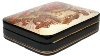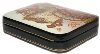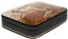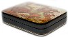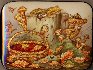 The box is showing a basket made out of flexible twigs full of ash-berries standing near a stub covered with honey agaric mushrooms. To paint this work the artist has used various shades of brown oils, and gold metal foil as an under-layer for the oils. Gold paint shines beautifully through the oils, and the box looks festive and appealing.
