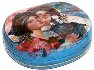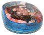 A gold line is passed around the sides of the box. The exterior of the box is covered with a blue mixture of colors that imitates a stone of blue marble.