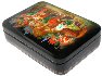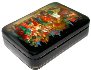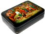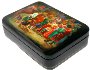 This bright colorful box was painted by Logvina Elena from the village of Fedoskino.