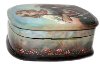 The box is constructed out of paper-mache. The box has a hinge from the left of the composition, and rests on a flat bottom. The work is signed by O. Zayakina.