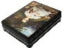 Description: Talented artist Galina Sverlova from the village of Fedoskino has painted this very detailed composition of a girl with a dog. The scene is nicely painted, with a keen eye for detail. Colors are bright and festive!