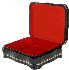 The box is constructed from paper-mache. Black lacquer is used to paint the exterior of the box while red lacquer completes its interior. It has a hinge from the top of the composition and rests flat. Signed and dated (2013) by the artist in black oils at the bottom of the composition.