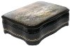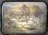 Description: Talented Fedoskino artist Yevgeniy Shishkin has painted this beautiful winter landscape scene. He managed to express his admiration aroused while contemplating a rare moment in nature. The bright sunset sun that still keeps the warmth of summer glows with the light of the great fire whereas the ground is covered with the snow suddenly fallen in the middle of autumn.