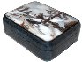 The box exterior's sides imitates the coloring of blue marble (tiny black veins are scattered against the light blue background). The interior is traditionally covered with red lacquer.