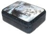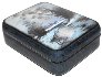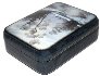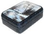 The box exterior's sides imitates the coloring of blue marble (tiny black veins are scattered against the light blue background). The interior is traditionally covered with red lacquer.