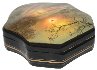 Description: This winter peaceful landscape is a creation of the talented Fedoskino artist Tatiana Tipyakova. It shows a panorama view to a small village at the winter sunrise.