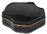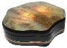 The box is constructed from paper-mache. Black lacquer is used to complete the exterior of the piece while red lacquer completes the interior of the box. The lid is hinged at the top and the box rests on a wavy platform. The work is signed, titled and dated (2012) by the artist.