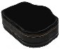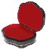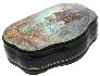 The box is constructed from paper-mache. Black lacquer is used to complete the exterior of the piece while red lacquer completes the interior of the box. The lid is hinged at the top and the box rests on a wavy platform. The work is signed and dated (2014) by the artist.