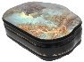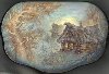 Description: This winter peaceful landscape is a creation of the talented Fedoskino artist Dmitriy Tipyakov. It shows a panorama view to a small village hidden somewhere within a forest.