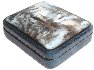 The box exterior's sides imitates the coloring of blue marble (tiny black veins are scattered against the light blue background). The interior is traditionally covered with red lacquer.