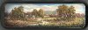 Different shades of green and yellow suitable for reproduction of an early fall setting have been used here. A piece of mother-of-pearl is inlaid in the sky in the middle of the composition.