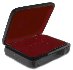 The box's exterior is painted black, while the box's interior is traditionally covered with red lacquer.
