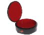 The box is constructed out of paper-mache. Black lacquer covers the exterior and red lacquer covers the interior of the box. The box has a hinge from the top of the scene, and rests on the legs, which comes from a wavy platform. Signed with the artist's name and Fedoskino.