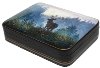 This gorgeous piece of authentic Russian miniture was created by Fedoskino artist, Alexander Simonov. He has mastered the ability to create breath-taking landscapes that appeal to each and every aspect of our senses. Here we can see forest landscape with a deer with horns.