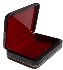 The box is constructed from paper-mache. Black lacquer is used to paint the exterior of the piece while red lacquer completes the interior of the box. A hinge is fastened to the top of the composition, and the box is rests flat. The work is signed with the artist name.