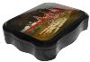 The scene is framed with a band painted in gold. Two parallel gold lines are used to frame the scene, and to decorate the box's sides.
