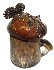 Known for her clever boxes with three-dimensional elements carved from them, Karina Kersilyan of Fedoskino takes her art a step further by making the entire piece more a sculpture than a box! These mushrooms as it has been said above peep from three-dimensional leaves, has a small bud from a birch tree. What's more surprising is that the top section of the big mushroom opens on a hinge to reveal a small square compartment, it is a box after all!