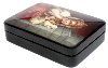 Talented artist Koloskova Lubov from the village of Fedoskino painted this splendid reproduction of the famous oil-on-canvas painting "By the Stove" painted by the Russian artist Konstantin Makovskiy (1839-1915). This scene is very popular among Fedoskino artists, but the first version of this painting was created by Nikolay Soloninkin.