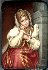 She wears traditional Russian upper-class clothing, and is probably the daughter of a wealthy merchant or perhaps even a nobleman. Her white sleeves are masterfully painted, with shading and design to show three-dimensionality.