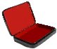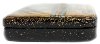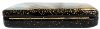 The box is constructed from paper-mache. Black lacquer is used to paint the exterior of the box while red lacquer completes the interior of the work.