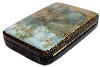 Description: This peaceful early autumn landscape has been painted by a talented Fedoskino artist, Sedov Dmitriy. The winding river flows along the grass covered banks. The trees and bushes covered with golden leaves looks so beautiful! To reproduce realistically a chosen season the artist has used yellow-brown and green oils. The scene is framed with the gold dots ornamentation.