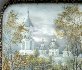 In the upper left corner we can see several white-stoned Cathedrals, painted over a large piece of mother-of-pearl.Details are breathtaking!
