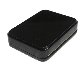 The box is constructed from paper-mache. Black lacquer is used to paint the exterior of the box while red lacquer completes the interior of the work. A hinge is fastened to the left of the composition, and the box rests flat.