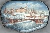 This beautiful view of the Moscow Kremlin has been painted by talented artist Skripunov, who specializes in painting the architecture of Moscow. In the foreground, the artist depicts the embankment of Moskva River. The central part of the composition shows the red-bricked Kremlin's wall. From left to right we can see the following towers of the wall: the Vodozvodnaya Tower, the Blagoveshchenskaya Tower, the Tainitskaya Tower, the First Bezymyannaya Tower, the Second Bezymyannaya Tower, the Petrovskaya Tower and the Moskvoretskaya Tower. Behind the Kremlin's wall we can see (from left to right) the Great Kremlin Palace, the Archangel Cathedral, the Belfry of Ivan the Great and the Assumption Bell Tower.