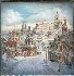 Here the artist has painted a magnificent view of the Moscow Kremlin that can be seen from the old town. In the background we can see the Borovitskaya and the Vodozvodnaya Towers of the red-bricked Moscow Kremlin wall. In the background the artist has painted the Great Kremlin Palace, and fragments of the Belfry of Ivan the Great, the Archangel Cathedral, the St.-Basil's Cathedral and the Spasskaya Tower.On the foreground we can see old two levels houses and small churches.