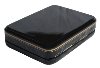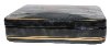 The scene is framed with a gold line, the sides of the box are decorated with two parallel lines as well. Black lacquer is used to paint the exterior of the box while red lacquer completes the interior of the work.