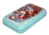 Description: This charming box is a creation of Taisiya Danchenko from the village of Fedoskino. The work is called "In awaiting", and depicts Santa came to sleeping girl and a boy in arm-chair who has asleep in awaiting of Santa and his gifts. The scene is painted against in bright blue oils; in some areas the oils are mixed with gold powder to produce a magic effect.