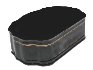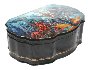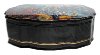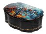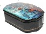 The box's exterior is painted black. The interior is traditionally covered with red lacquer.