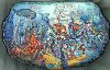 It shows dolphins, whales and underwater riders swimming in the ocean's depths around an acient town, which is now covered with a water. The sunlight struggles through the underwater caves and illuminates the walls of the building ,water plants, corals and fishes. The great skill is needed to reproduce the atmosphere of an underwater world as the artist did.