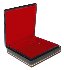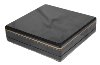 The composition is framed with a gold line. The sides of a box are decorated with two gold parallel lines. The box's exterior is black, while the box's interior is red.