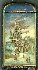 The architecture of each building is painted over silver powder that gives it a three-dimensional look and fills the composition with a festive light. The clouds in the sky are highlighted with gold metal powder. Each scene is framed with a wide band painted in white oils and outlined with gold.
