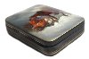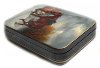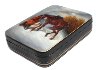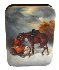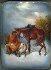 Description: This box is a creation of Yuliya Golubyonkova. Here she depicts a hunter who has lost his way in the winter forest because of a snowstorm. He, his dog and horse grouped very close to each other to protect themselves from the strong wind.