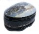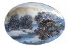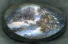 The artist has used a whole sea shell as a lid of this box, otherwords, the artist has used mother-of-pearl as base for his painting! Mother-of-pearl is shines from all over the scene through the skies, ice on a river, and through the trees...